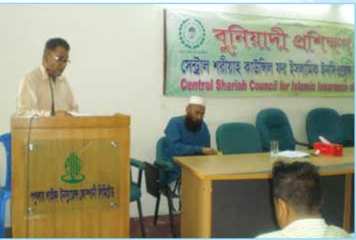২০০৯ সালে কাউন্সিলের বুনিয়াদী প্রশিক্ষণ কোর্সে বক্তব্য রাখছেন তাকাফুলইসলামী ইন্স্যুরেন্সলিঃ এর চেয়ারম্যান জনাব অধ্যাপক মোঃ ফজলে আজিম