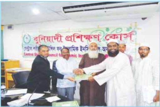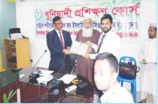 বুনিয়াদী প্রশিক্ষণ কোর্স মার্চ- ২০১৭ এর সমাপনী অনুষ্ঠানে অংশগ্রহণকারী প্রশিক্ষণার্থীদের মধ্যে সনদপত্র প্রদান করছেন প্রধান অতিথি সেন্ট্রাল শরীয়াহ্কাউন্সিলের চেয়ারম্যান অধ্যক্ষ সাইয়্যেদ কামালুদ্দীন জাফরীএবং বিশেষ অতিথি বাংলাদেশ ইনস্যুরেন্স ফোরাম এর প্রেসিডেন্ট ও পপুলারলাইফ ইনস্যুরেন্স কোম্পানী লিমিটেড এর ব্যবস্থাপনা পরিচালক ও সিইও জনাববিএম ইউসুফ আলী