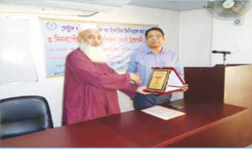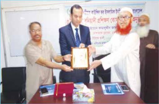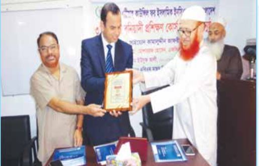 ৩ দিনব্যাপী বুনিয়াদী প্রশিক্ষণ কোর্সের বিশেষ অতিথি বীমা উন্নয়ন ও নিয়ন্ত্রণ কর্তৃপক্ষেরনির্বাহী পরিচালক (যুগ্ম সচিব) জনাব খলিল আহমদকে ক্রেষ্ট প্রদান করছেন কাউন্সিলেরসেক্রেটারী জেনারেল অধ্যাপক মাওঃ এবিএম মাছুম বিল্লাহ