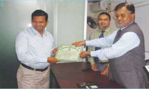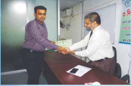 সনদপত্র গ্রহণ করছেন পদ্মা ইসলামী লাইফ ইনসিওরেন্স লিঃএর এক্সিকিউটিভ অফিসার জনাব মোঃ জাকির হোসেন